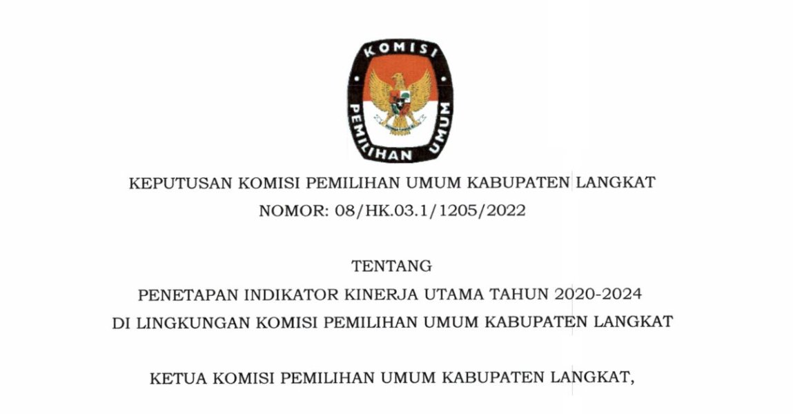 #TemanPemilih, berikut kami sampaikan Keputusan KPU Kabupaten Langkat Nomor 08/HK.03.1/1205/2022 tentang Penetapan Indikator Kinerja Utama Tahun 2020-2024 di Lingkungan KPU Kabupaten Langkat, Selengkapnya... KLIK DI SINI ....