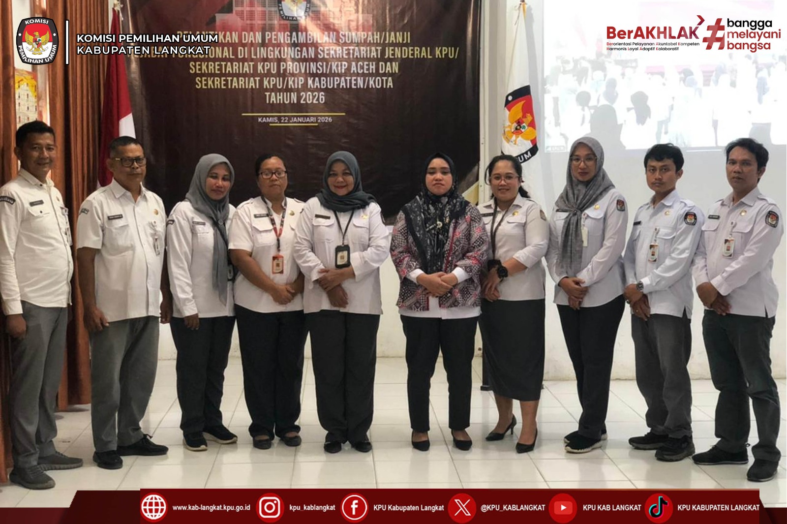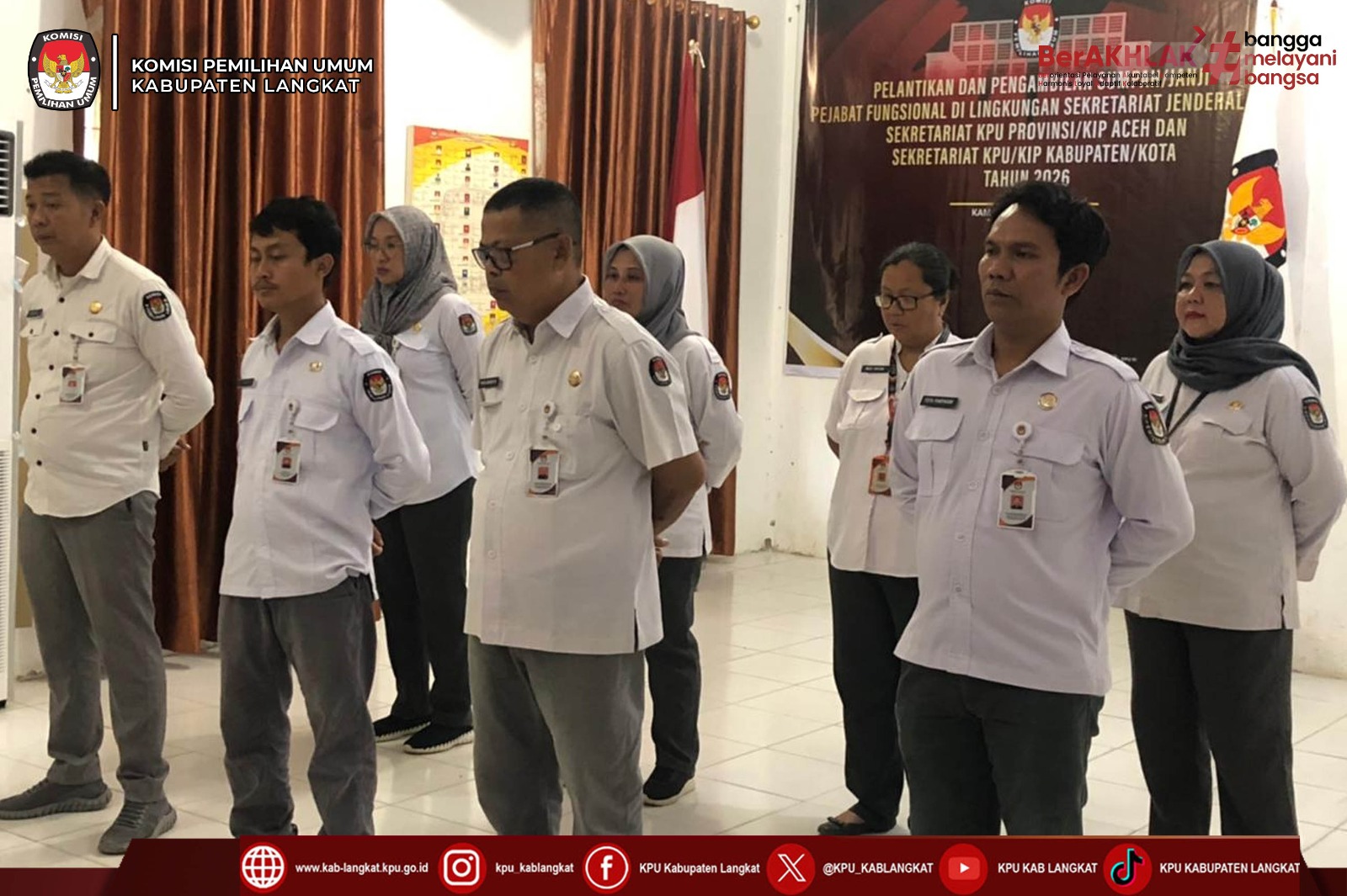 Sebanyak Delapan Aparatur Sipil Negara Sekretariat KPU Kabupaten Langkat dilantik dan diambil sumpah/janjinya yaitu Hotnida Siregar, Santi Hariati, Neny Rafiani, Tota Sanggam Pakpahan, Tengku Badrun Isa, Tengku Sheilla Noviza, T.Nuzul Khair, Juari. Pelantikan dan Pengambilan Sumpah/Janji dipimpin langsung oleh Sekretaris Jenderal Komisi Pemilihan Umum Republik Indonesia, Bernad Dermawan Sutrisno.