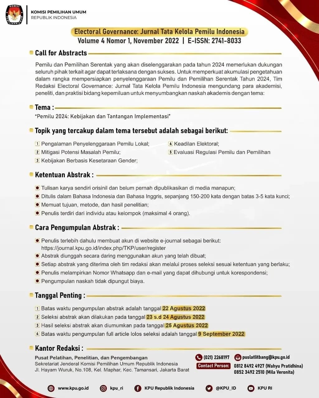 Call For Abstracts, Electoral Governance: Jurnal Tata Kelola Pemilu Indonesia