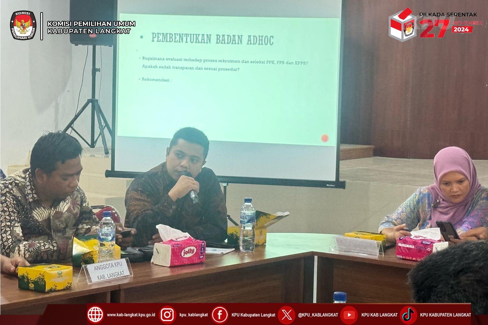 Kegiatan ini adalah sebagai bentuk evaluasi pelaksanaan Pilkada Tahun 2024 yaitu mengidentifikasi keberhasilan dan kendala yang terjadi selama proses pemilihan Bupati dan Wakil Bupati Kabupaten Langkat 2024, mendapatkan masukan dari berbagai pihak dengan melibatkan peserta diskusi dari berbagai unsur untuk memperoleh perspektif yang lebih luas dalam hal membantu KPU Kabupaten Langkat menyusun Laporan Evaluasi yang komprehensif yaitu laporan yang mencerminkan fakta di lapangan dan memberikan rekomendasi untuk perbaikan dalam penyelenggaraan pemilu dan pilkada di masa mendatang. Diharapkan hasil FGD dapat menjadi dasar evaluasi bagi KPU dalam memperbaiki sistem dan prosedur Pemilu maupun pemilihan yang lebih transparan, adil, dan akuntabel.