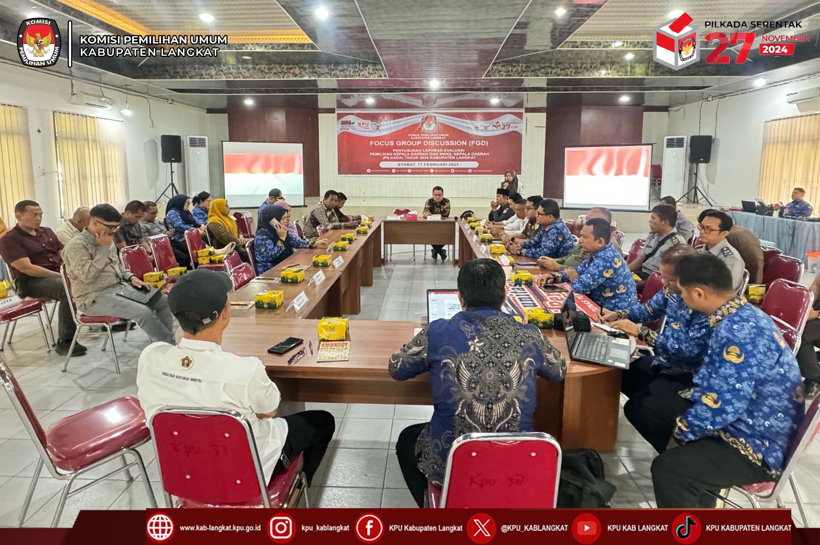 #temanpemilih , KPU Kabupaten Langkat menggelar Focus Group Discussion (FGD) Dalam Rangka Penyusunan Laporan Evaluasi Pemilihan Bupati dan Wakil Bupati Kabupaten Langkat Tahun 2024 bertempat di Aula Kacabdis Wil II, Senin (17/02/25)