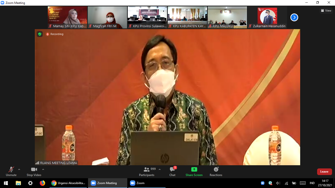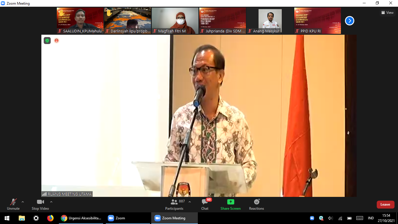 Menghadapi tahapan Pemilu dan Pemilihan Tahun 2024 mendatang, KPU berupaya mengoptimalkan pelayanan dan pengelolaan informasi publik melalui Rapat Koordinasi Nasional (Rakornas) Pejabat Pengelola Informasi dan Dokumentasi (PPID) dan Workshop Kehumasan. Kegiatan bertema “Optimalisasi Peran PPID dan Kehumasan Menuju Layanan Informasi yang Berkualitas,” diselenggarakan 27-29 Oktober 2021 secara luring di Bogor, Jawa Barat, dan diikuti secara daring oleh KPU provinsi dan kabupaten/kota se-Indonesia.