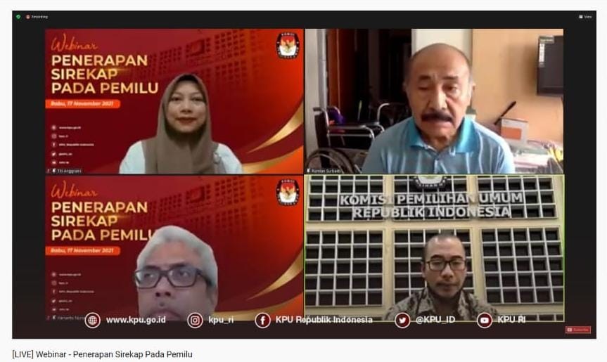 KPU RI menyelenggarakan Webinar Penerapan Sirekap Pada Pemilu pada Rabu, 18 November 2021. Kegiatan ini diikuti oleh KPU Provinsi dan Kabupaten/Kota se-Indonesia, partai politik, pers dan organisasi masyarakat sipil pegiat pemilu. Webinar terbuka untuk umum yang dapat disaksikan secara langsung di kanal Youtube KPU.