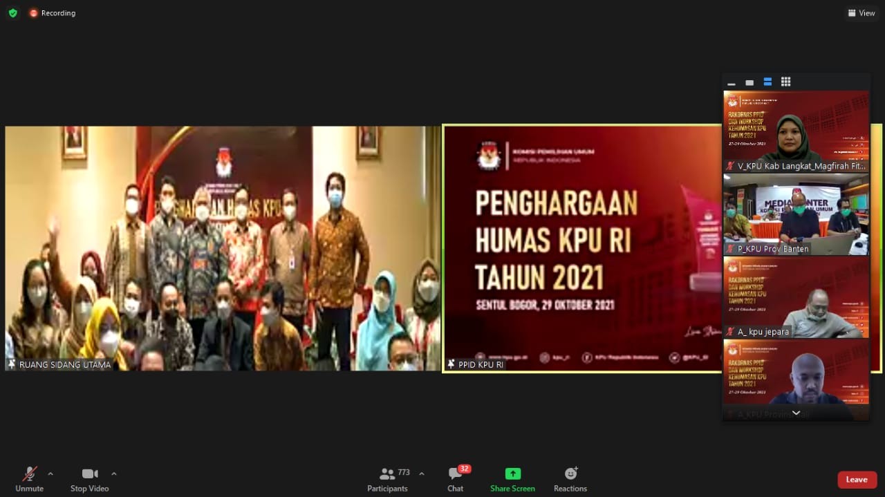 Pemberian penghargaan secara virtual disampaikan oleh Pelaksana Harian Ketua KPU, I Dewa Kade Wiarsa Raka Sandi, dan Anggota KPU, Arif Budiman. Rakornas dan workshop ini diselenggarakan secara luring di Bogor, Jawa Barat serta diikuti melalui daring oleh KPU Provinsi/KIP Aceh dan KPU/KIP Kabupaten/Kota se-Indonesia. Kegiatan ini berlangsung selama tiga hari, 27-28 Oktober 2021 dengan tujuan untuk mengoptimalkan pelayanan dan pengelolaan informasi publik