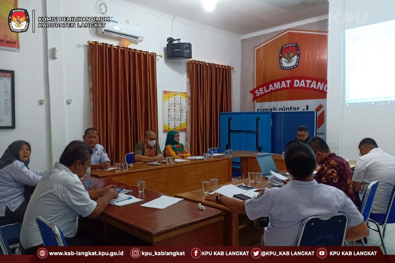 KPU Kabupaten Langkat melaksanakan rapat pleno rutin, pada Senin, 8 Agustus 2022 di aula Kantor KPU Kabupaten Langkat.