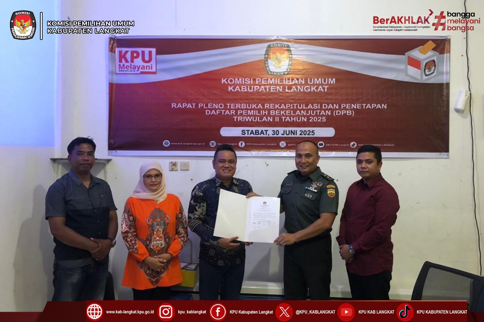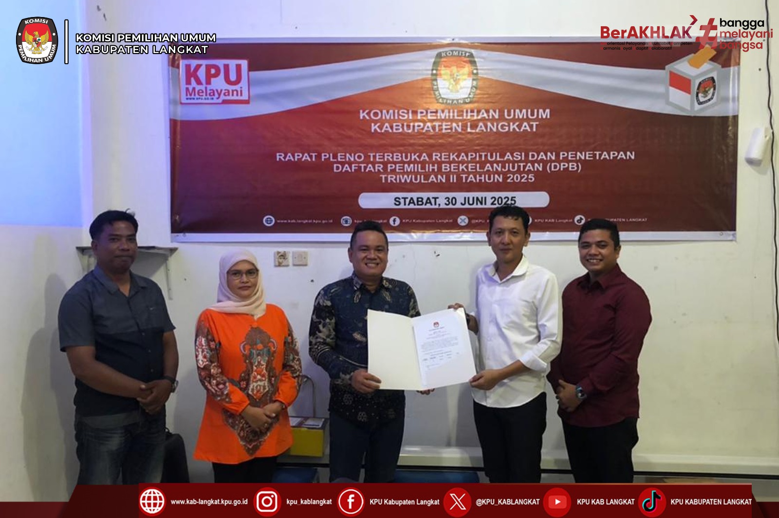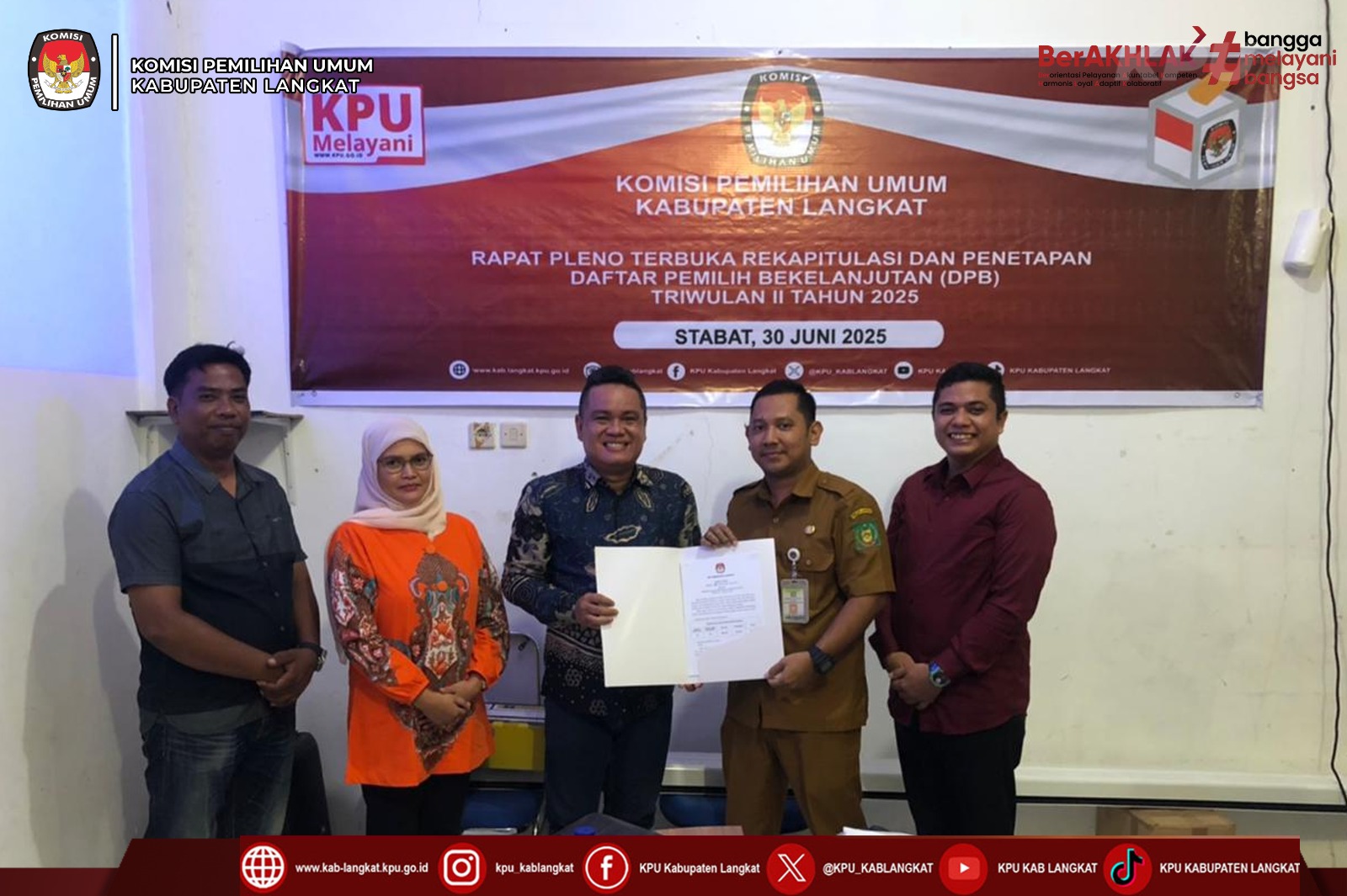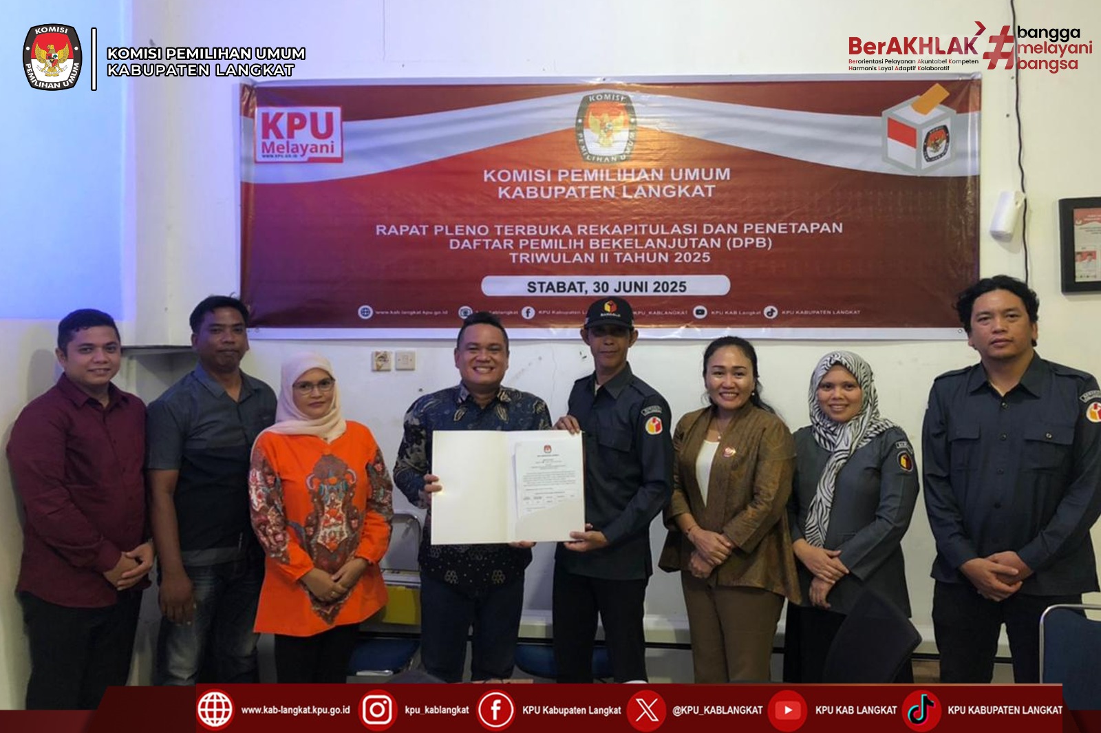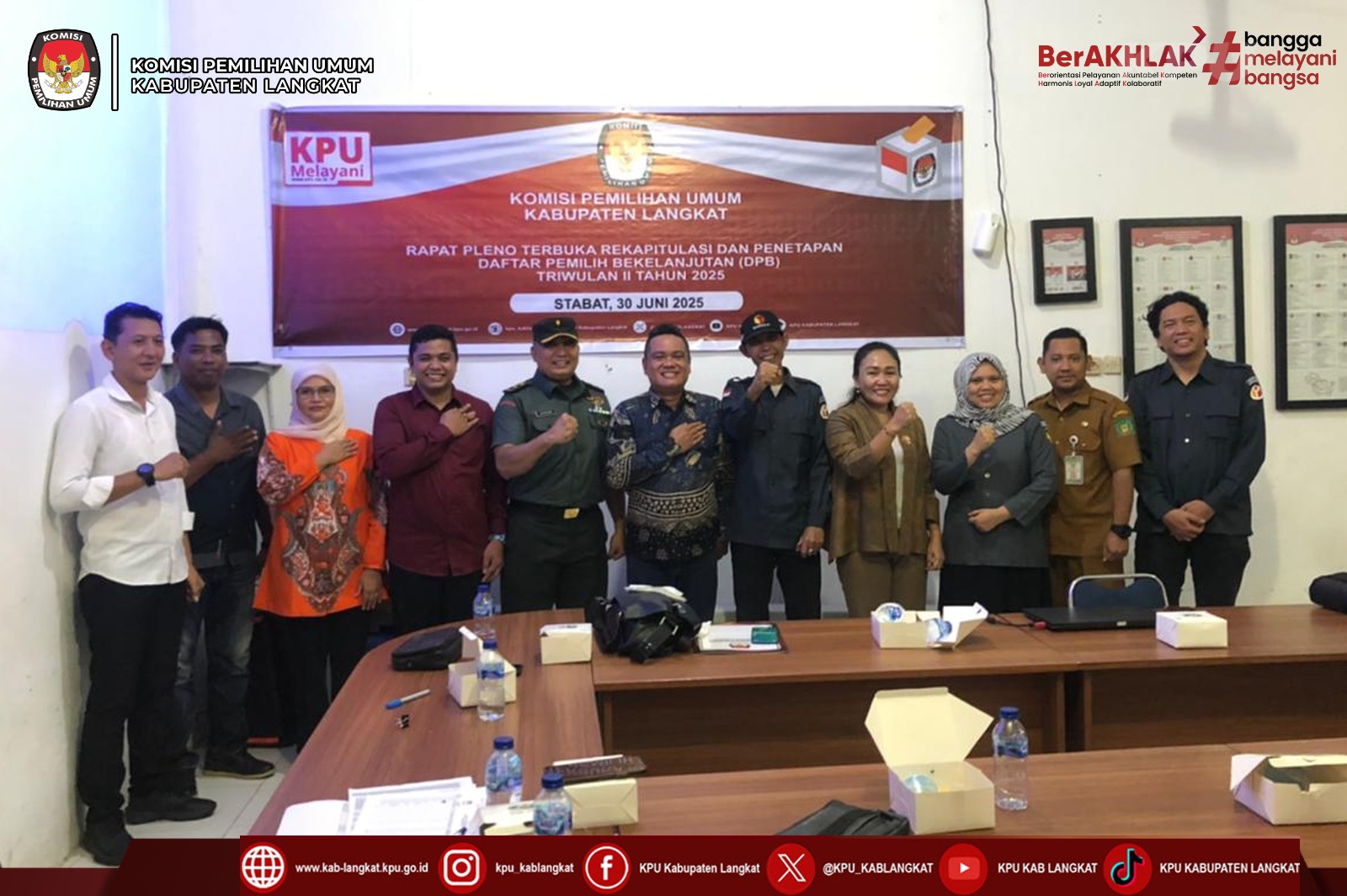 Rapat Pleno Terbuka Rekapitulasi Pemutakhiran Data Pemilih Berkelanjutan (PDPB) Triwulan II Tahun 2025 di Kantor KPU Kabupaten Langkat