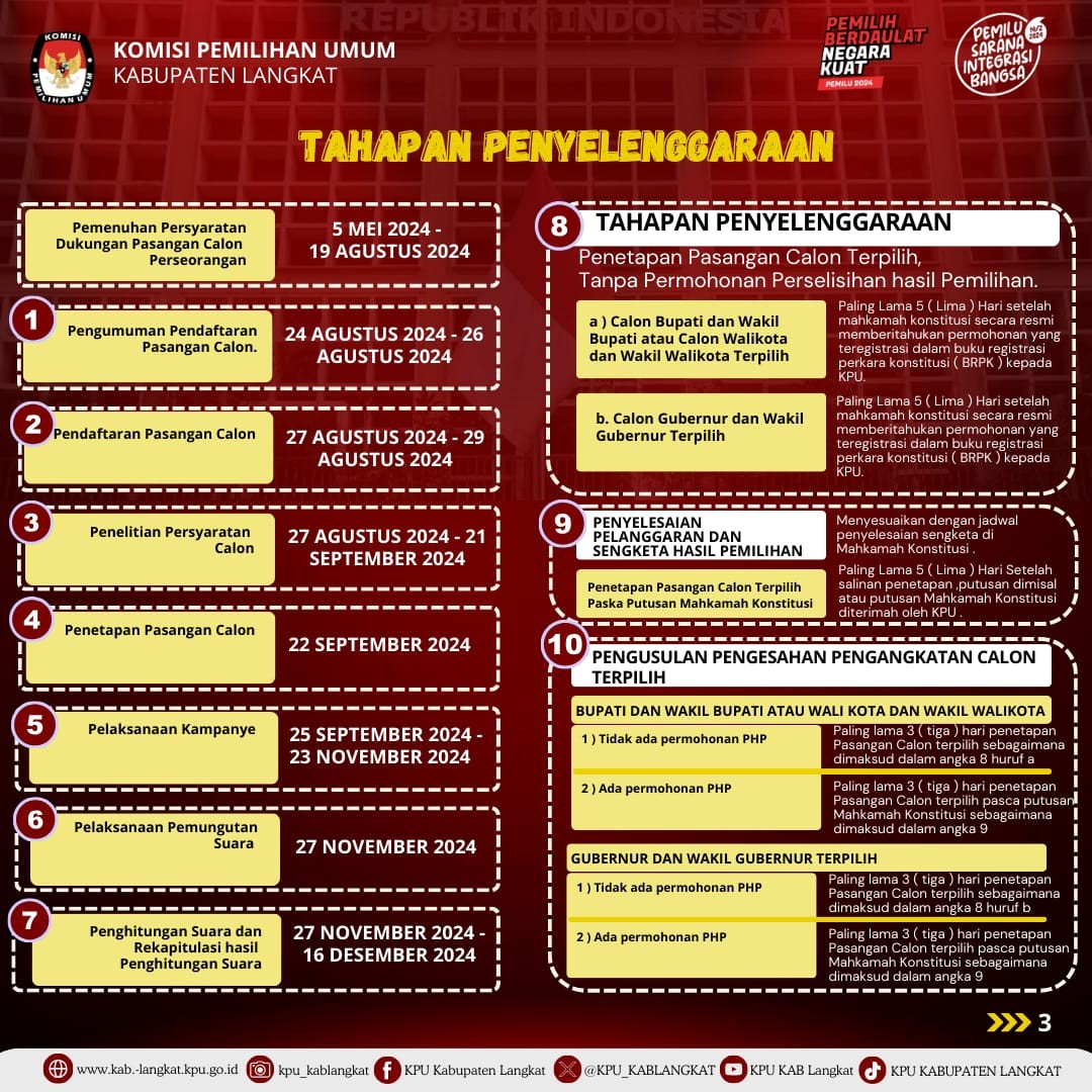 #TemanPemilih, Berikut kami sampaikan Tahapan dan Jadwal Pelaksanaan Pilkada Gubernur dan Wakil Gubernur dan Pemilihan Bupati dan Wakil Bupati Kabupaten Langkat Tahun 2024.