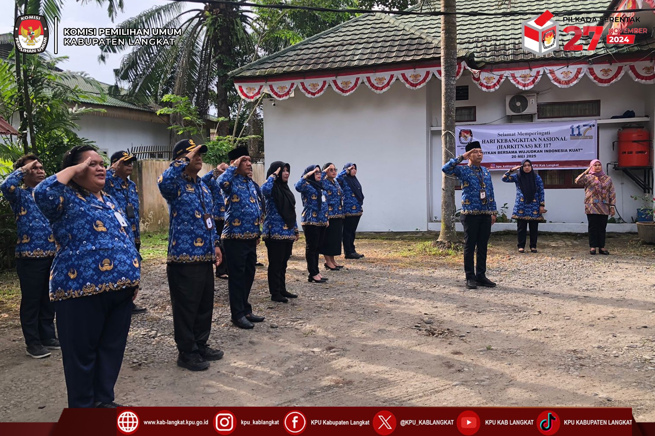 #TemanPemilih, KPU Kabupaten Langkat melaksanakan Upacara Peringatan Hari Kebangkitan Nasional ke-117 pada hari Selasa (20/05/2025) di Halaman Kantor KPU Kabupaten Langkat.