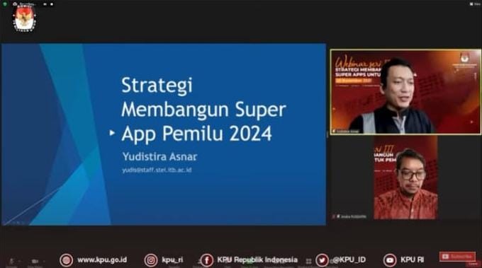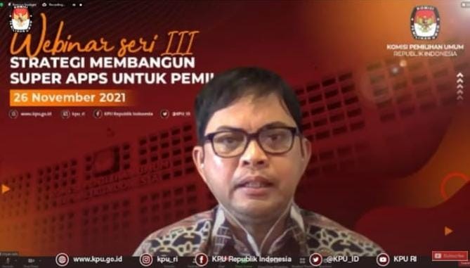 KPU menyelenggarakan Webinar Digitalisasi Pemilu Seri 3 dengan tema Strategi Membangun Super Apps Untuk Pemilu 2024 pada Jumat, 26 Nopember 2021. Hadir sebagai narasumber Andri Qiantori, Head of Developer Managemet Telkom Indonesia dan Yudistira Dwi W. A., Dosen Institut TeknologiBandung. Kegiatan secara daring dan diikuti oleh KPU Provinsi dan Kabupaten/Kota se-Indonesia.
