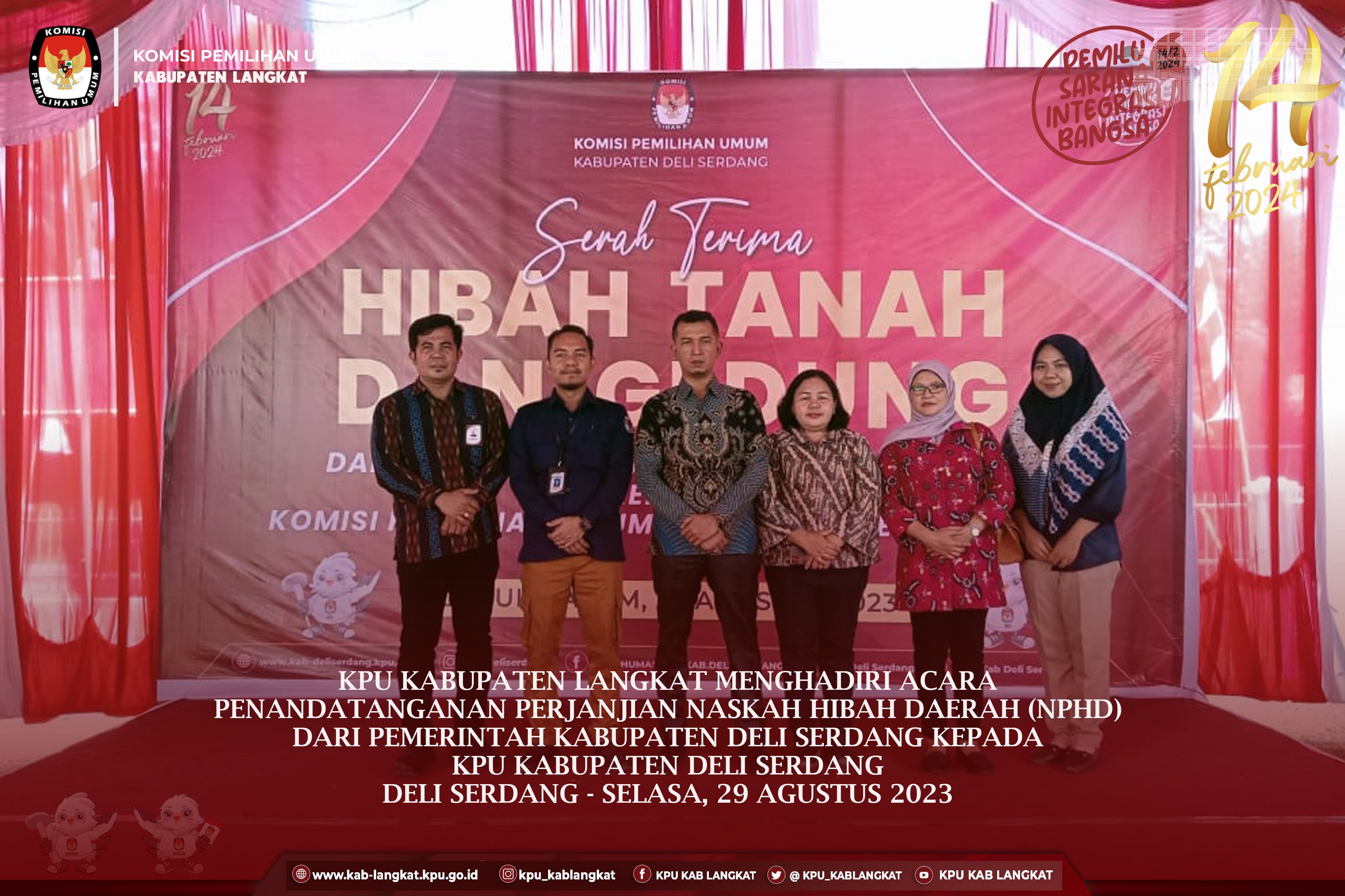 #TemanPemilih, Ketua KPU Kabupaten Langkat, Sopian Sitepu, Anggota KPU Kab Langkat, Agus Arifin, Ferdiansyah Putra, Maghfirah Fitri M, dan Sekretaris KPU Kabupaten Langkat, Zainul Arifin, Melaksanakan Upacara Pelantikan Pengganti PPK Babalan, a.n Budi Ismuliadi di Kantor KPU Kabupaten Langkat, Senin (11/09/2023)