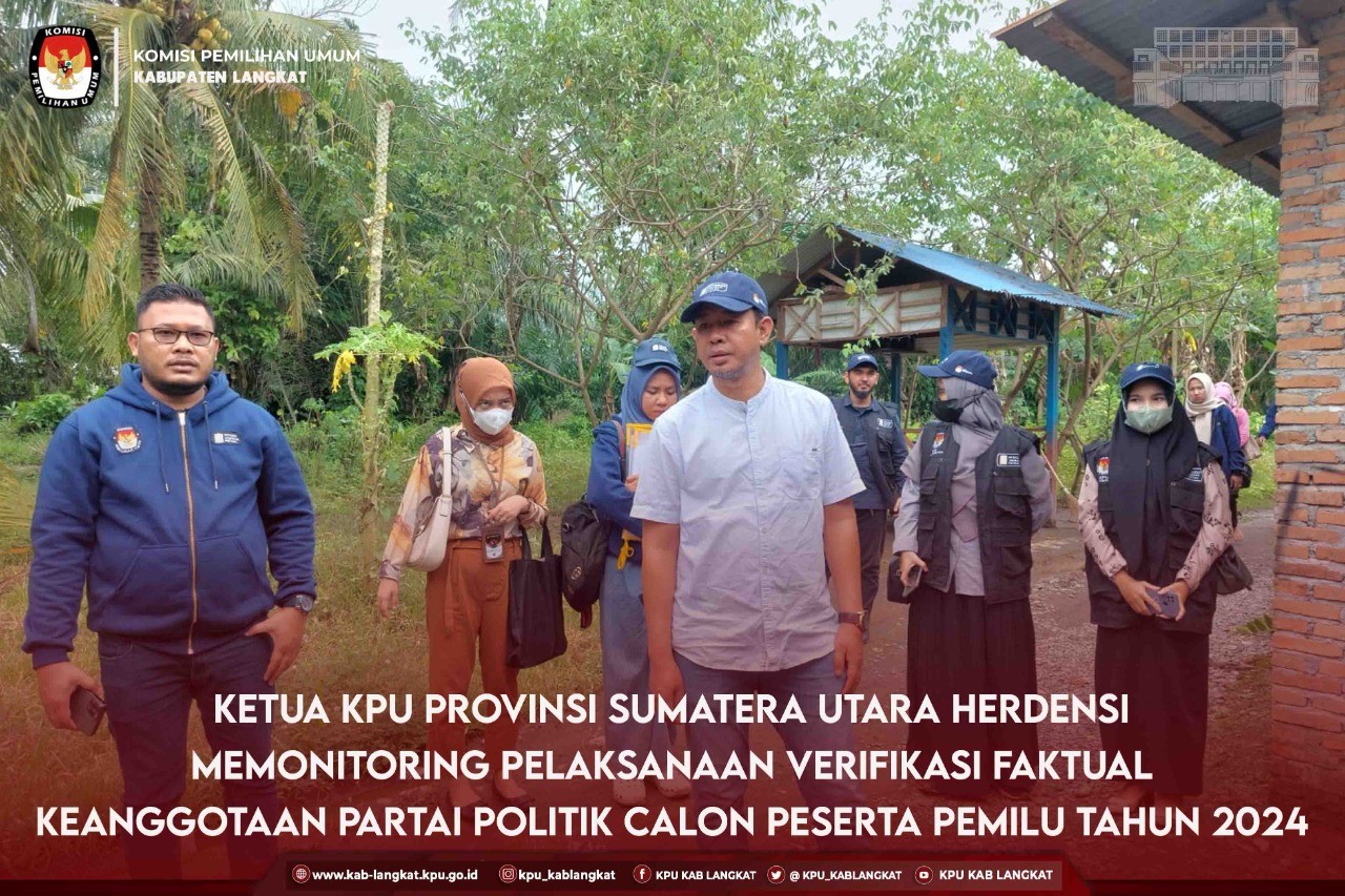 #TemanPemilih, Ketua KPU Provinsi Sumatera Utara, Herdensi, melakukan kunjungan kerja ke Kabupaten Langkat dalam rangka Supervisi dan Monitoring Verifikasi Faktual Keanggotaan Partai Politik Calon Peserta Pemilu Tahun 2024, Sabtu (22/10/2022).