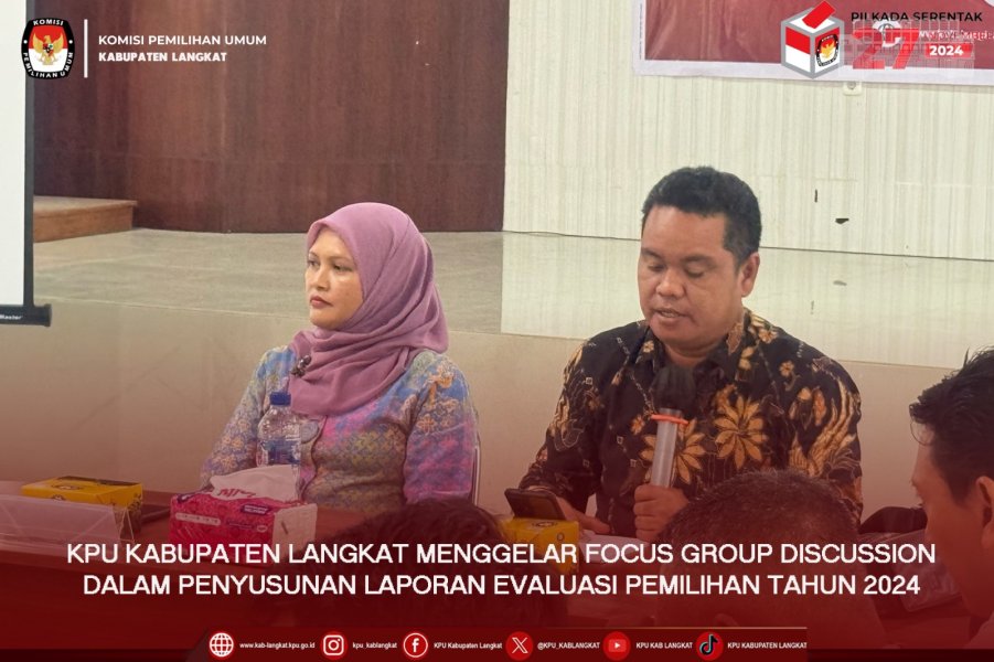 Kegiatan ini adalah sebagai bentuk evaluasi pelaksanaan Pilkada Tahun 2024 yaitu mengidentifikasi keberhasilan dan kendala yang terjadi selama proses pemilihan Bupati dan Wakil Bupati Kabupaten Langkat 2024, mendapatkan masukan dari berbagai pihak dengan melibatkan peserta diskusi dari berbagai unsur untuk memperoleh perspektif yang lebih luas dalam hal membantu KPU Kabupaten Langkat menyusun Laporan Evaluasi yang komprehensif yaitu laporan yang mencerminkan fakta di lapangan dan memberikan rekomendasi untuk perbaikan dalam penyelenggaraan pemilu dan pilkada di masa mendatang. Diharapkan hasil FGD dapat menjadi dasar evaluasi bagi KPU dalam memperbaiki sistem dan prosedur Pemilu maupun pemilihan yang lebih transparan, adil, dan akuntabel.