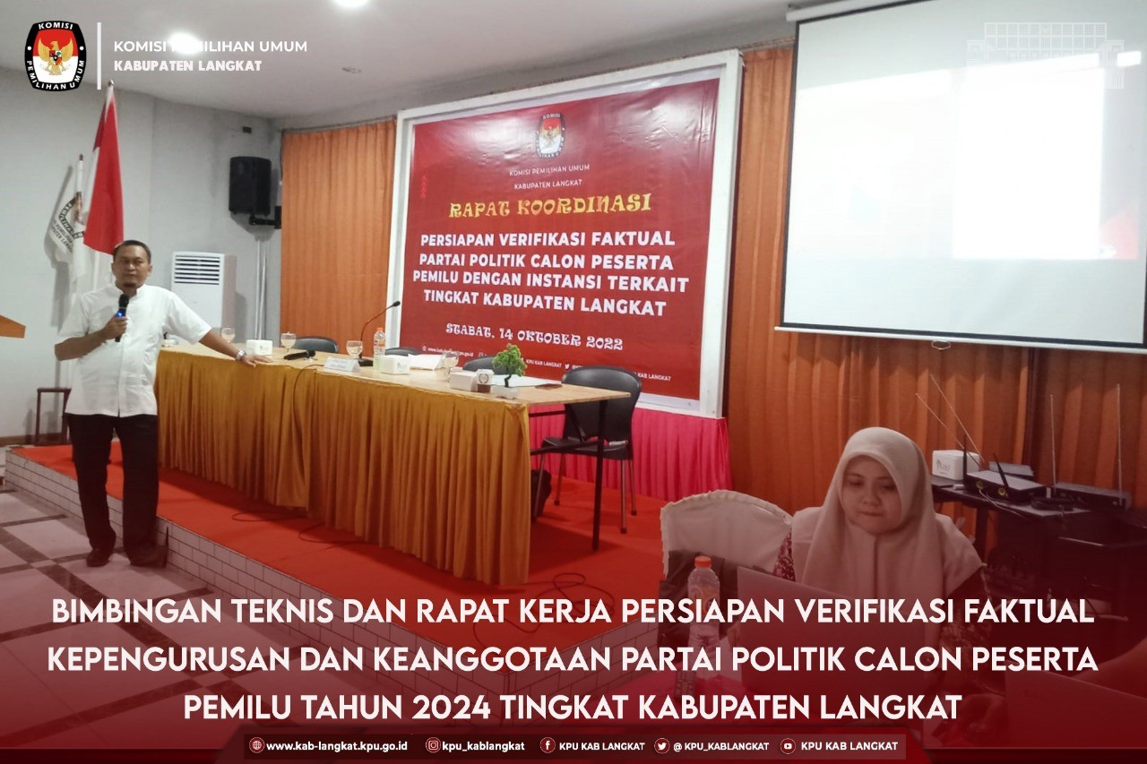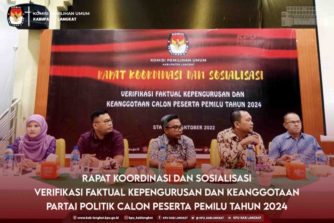 #TemanPemilih, KPU Kabupaten Langkat melaksanakan Rapat Koordinasi dan Sosialisasi Verifikasi Faktual Kepengurusan dan Keanggotaan Partai Politik Calon Peserta Pemilu Tahun 2024 di Aula Stabat Seafood, Selasa (11/10/2022). Kegiatan ini dihadiri oleh pengurus partai politik di Kabupaten Langkat. Rapat dibuka oleh Ketua KPU Kabupaten Langkat, Sopian Sitepu, pada pukul 09.30 WIB. Hadir sebagai narasumber, Anggota KPU Kabupaten Langkat Divisi Teknis Penyelenggaraan Pemilu, Muhammad Khair. Pada kesempatan tersebut, Muhammad Khair menyampaikan bahwa seluruh sumber daya manusia di KPU Kabupaten Langkat akan dikerahkan untuk melaksanakan verifikasi faktual terhadap kepengurusan, kepemilikan kantor, keterwakilan perempuan serta keaggotaan partai politik di Kabupaten Langkat. “Partai politik diharapkan kooperatif sehingga tahapan verifikasi faktual dapat berjalan dengan baik,” ujarnya. Turut hadir Riono Hardiman, Anggota Bawaslu Kabupaten Langkat, sebagai narasumber terkait pengawasan terhadap verifikasi faktual kepengurusan dan keanggotaan partai politik yang tahapannya akan dilaksanakan pada Oktober 2024. #KPUMelayani #KPUKabLangkat #PemiluSerentak2024