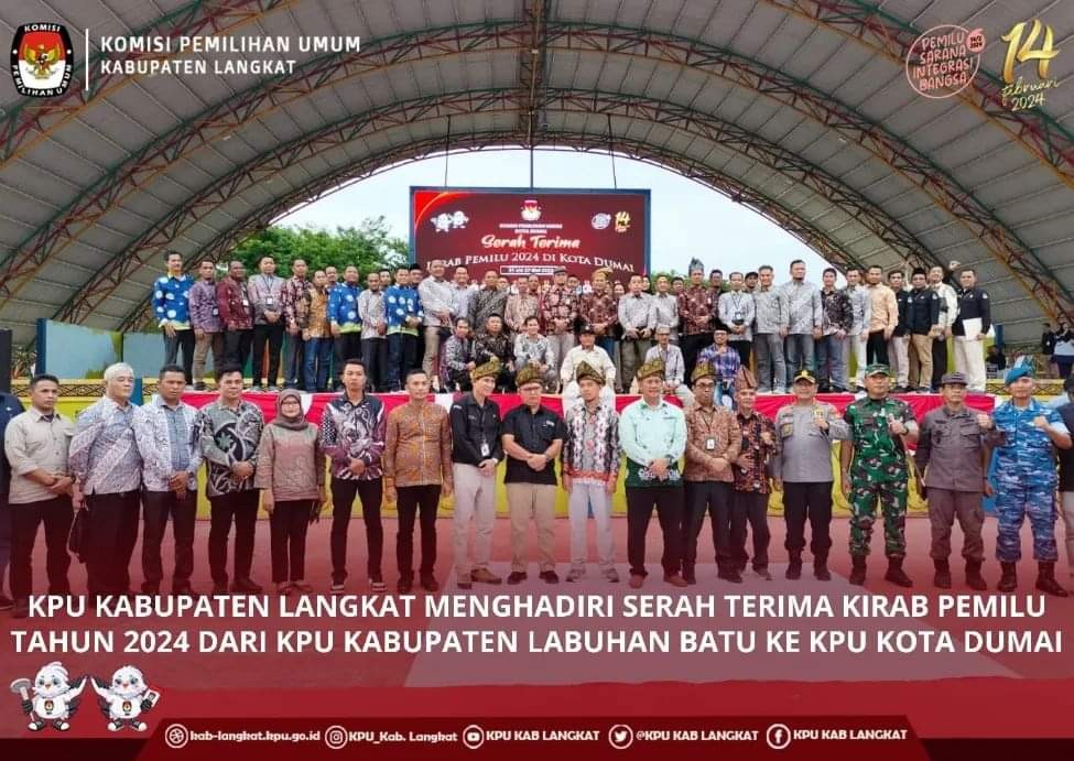 #TemanPemilih, KPU Kabupaten Langkat menghadiri seremoni serah terima Kirab Pemilu Tahun 2024 dari KPU Kabupaten Labuhan Batu ke KPU Kota Dumai, Minggu (21/5/2023). Kegiatan ini dihadiri oleh anggota KPU Kabupaten Langkat, Magfirah Fitri Menjerang, Sekretaris, Zainul Arifin dan staf.