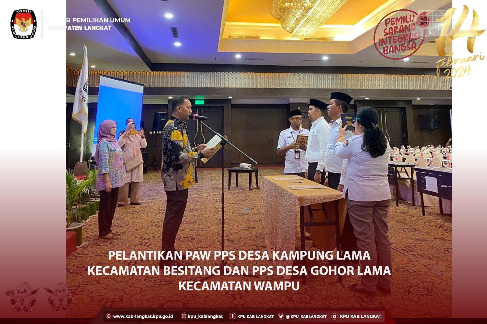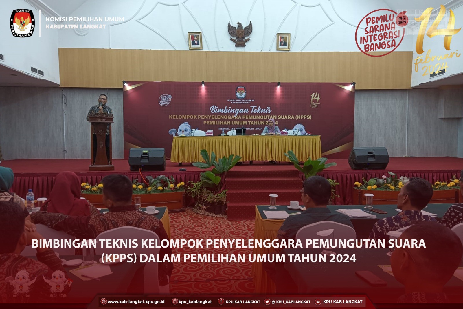 #TemanPemilih, KPU Kabupaten Langkat melaksanakan Bimbingan Teknis Kelompok Penyelenggara Pemungutan Suara (KPPS) dalam Pemilihan Umum Tahun 2024 tingkat Kabupaten Langkat terhadap Ketua dan Anggota PPK dan PPS se Kabupaten Langkatn di Hotel Emerald Garden, dan Hotel Madani Medan, Senin sampai dengan Selasa 22 sampai dengan 23 Januari 2024
