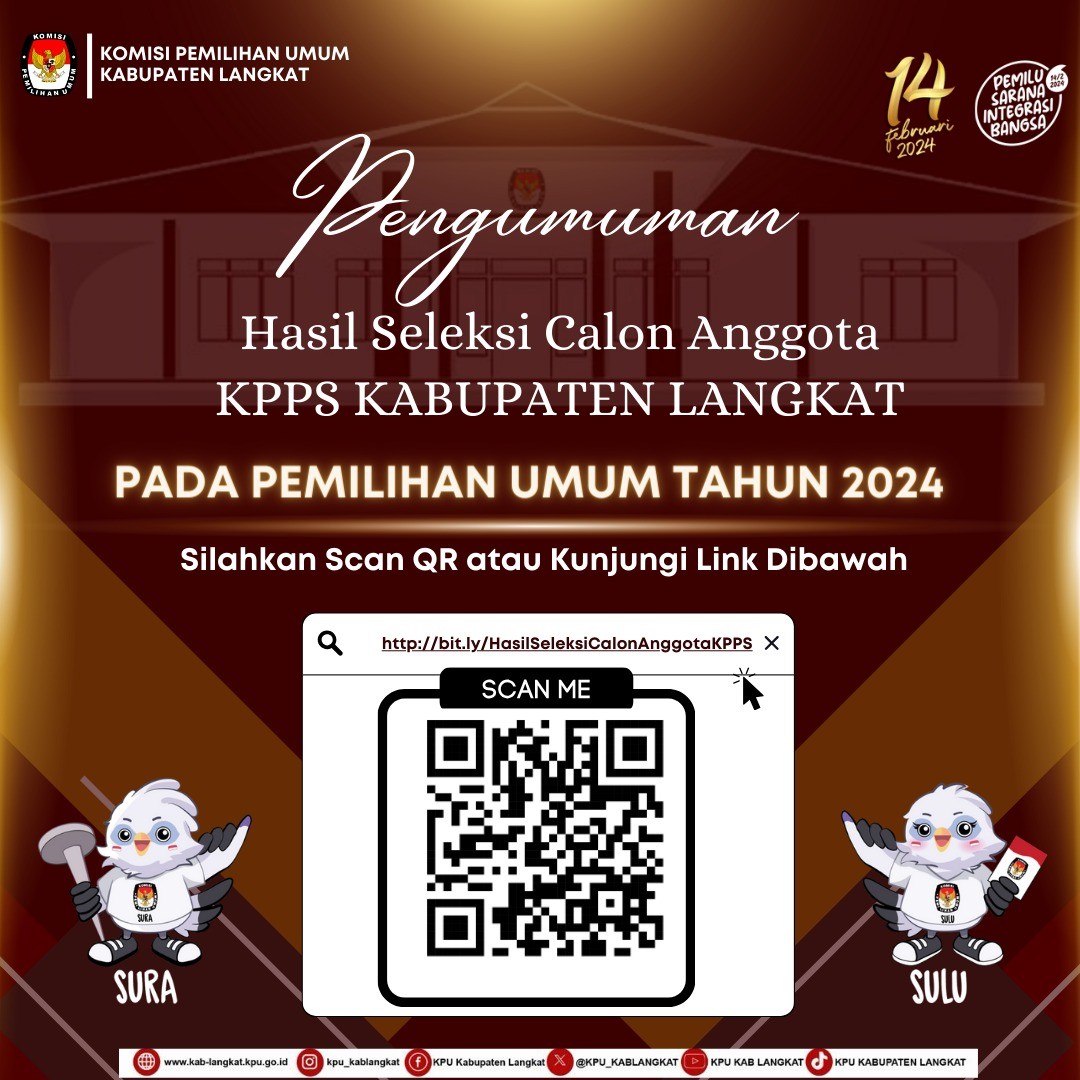 PENGUMUMAN HASIL SELEKSI CALON ANGGOTA KPPS SE-KABUPATEN LANGKAT KPU KABUPATEN LANGKAT Sabtu, 30 Desember 2023 00:00 2643 #TemanPemilih, Berikut kami sampaikan Pengumuman Hasil Seleksi Calon Anggota KPPS KPU Kab. Langkat. #KPUMelayani #PemiluSerentak2024 #kpukablangkat Baca Selengkapnya