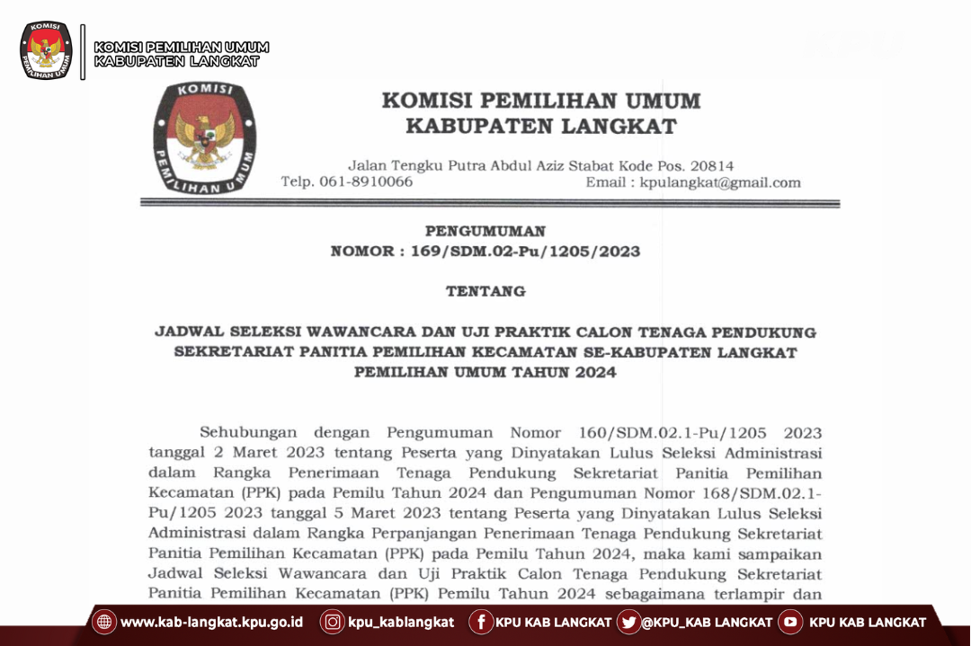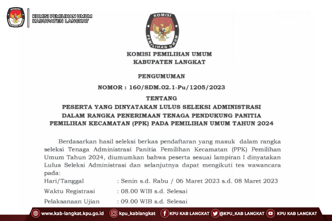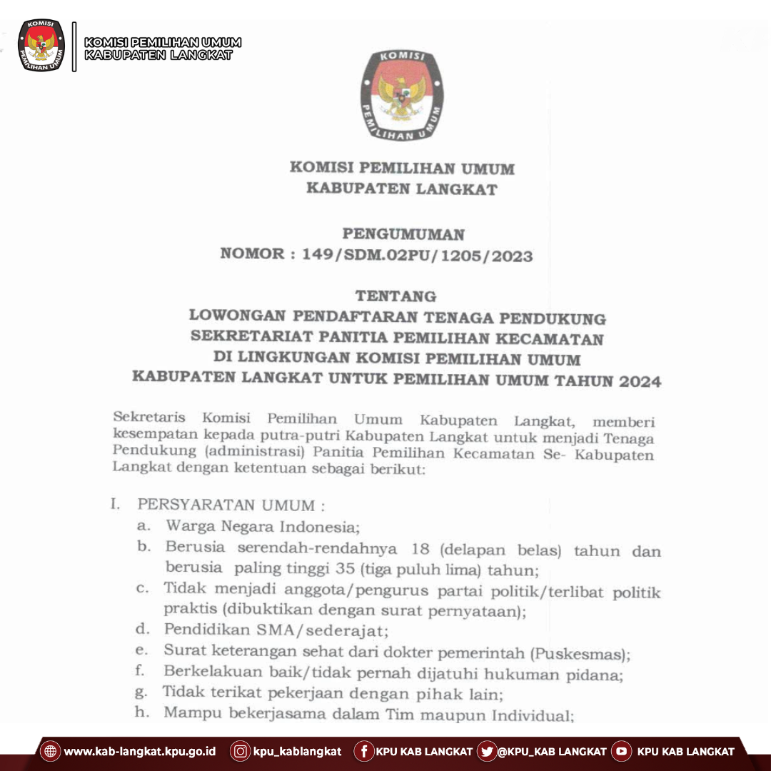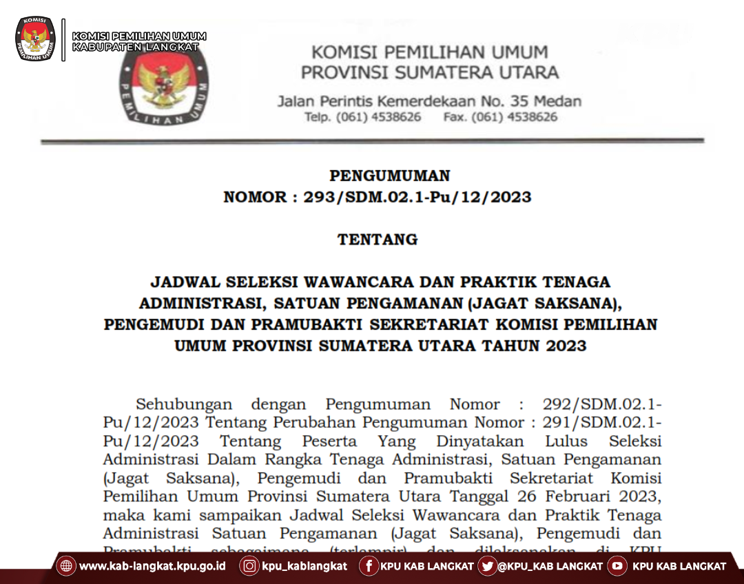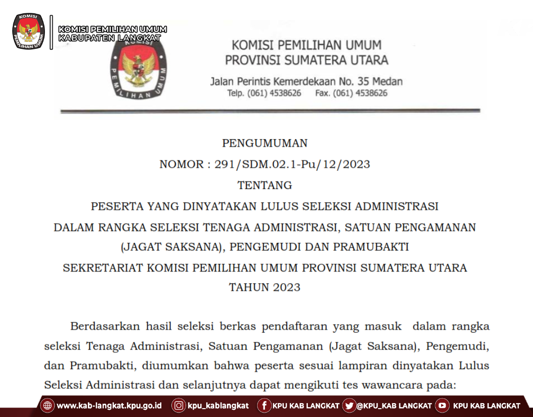 Pengumuman Peserta yang Dinyatakan Lulus Seleksi Administrasi dalam Rangka Seleksi Tenaga Administrasi, Satuan Pengamanan (Jagat Saksana), Pengemudi, dan Pramubakti Sekretariat Komisi Pemilihan Umum Provinsi Sumatera Utara Tahun 2023