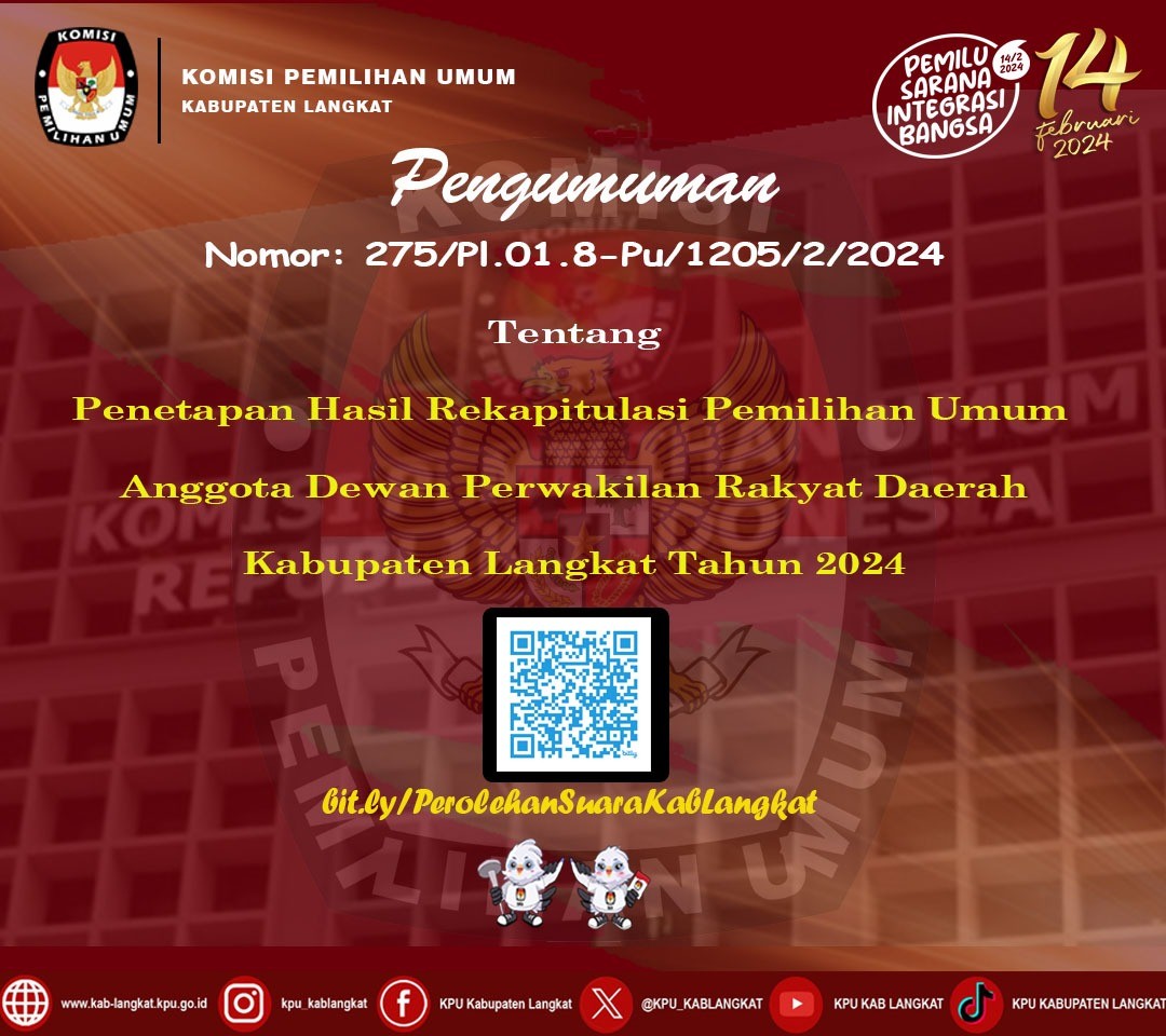 #TemanPemilih, KPU Langkat Mengumumkan Rekapitulasi Hasil Penghitungan Perolehan Suara Pemilu Presiden Dan Wakil Presiden, Anggota Dpr, Dpd, Dprd Provinsi, Dan Dprd Kabupaten/Kota Di Kabupaten Langkatdalam Pemilihan Umum Tahun 2024