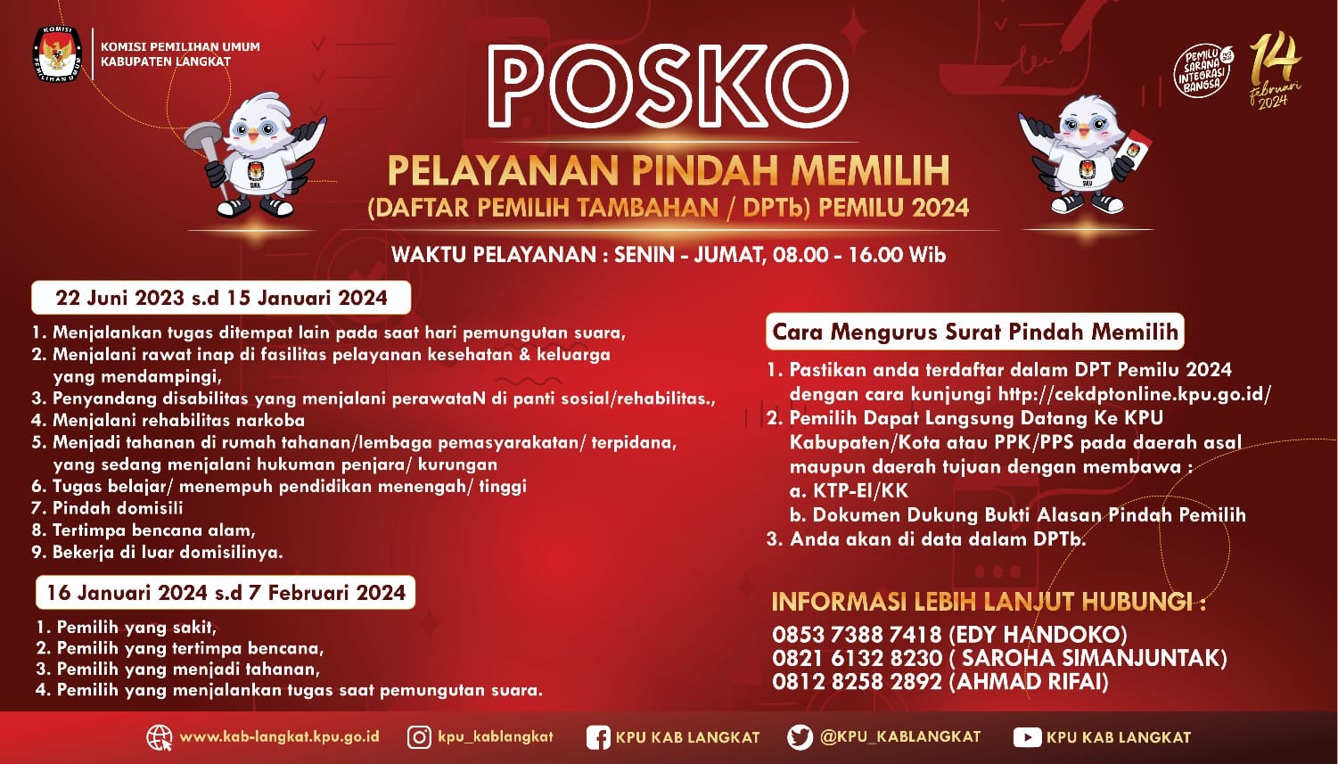 #TemanPemilih, KPU Kabupaten Langkat Membuka Posko Pelayanan Pindah Memilih Daftar Pemilih Tambahan/DPTb Pemilu Tahun 2024, Untuk informasi lebih lanjut simak informasi selengkapnya pada postingan berikut.